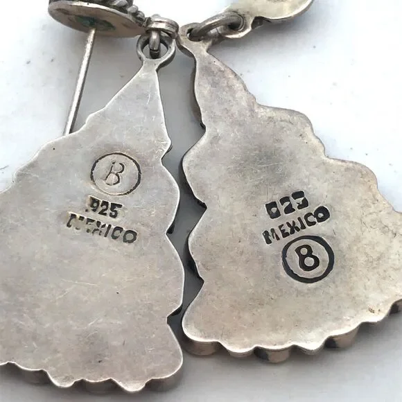 Vintage Bernice Goodspeed Taxco 925 Sterling Silver Turquoise Dangle Earrings