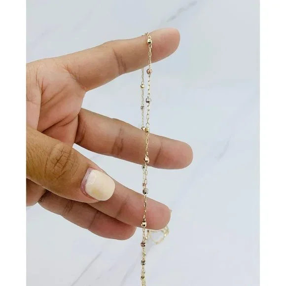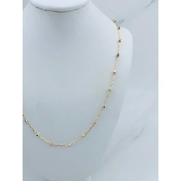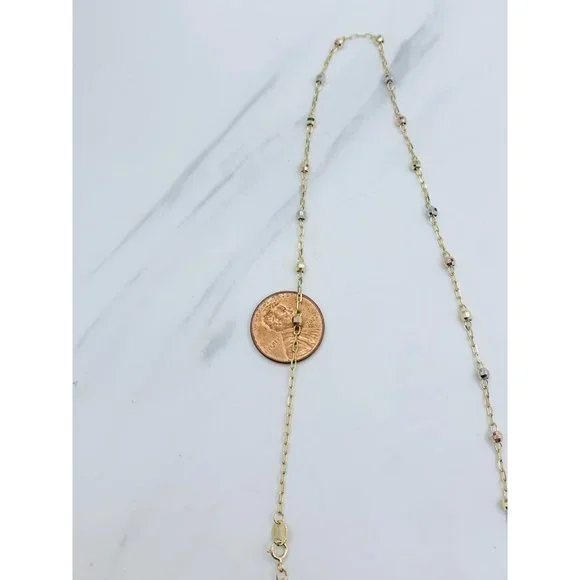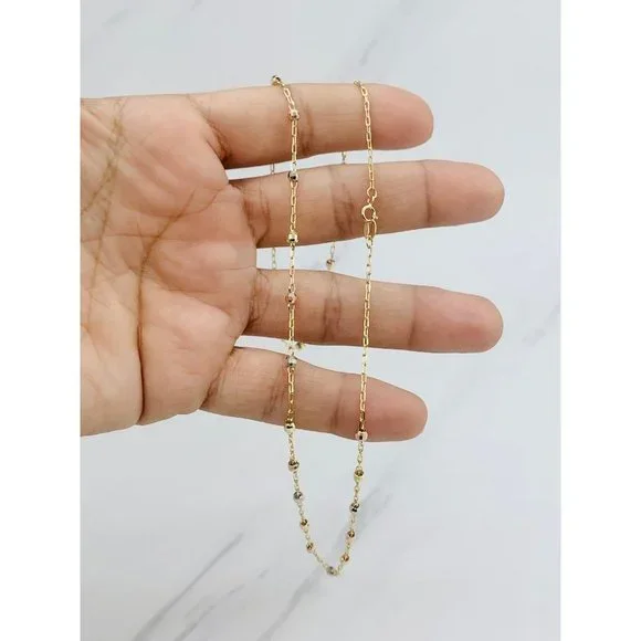Real 10k gold necklace with beads ❤️ Pendant and necklace in 3 tone gold ❤️ Necklace with beads ❤️ Necklace is 20” long Checkout my other jewelry ❤️ Dije colgante y Cadena de oro de 10 Kilates ❤️ Cadena mide 20 pulgadas❤️ Dije luna colgante ❤️ Oro doradoStock #052173