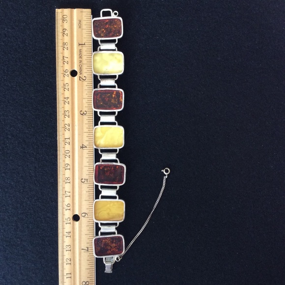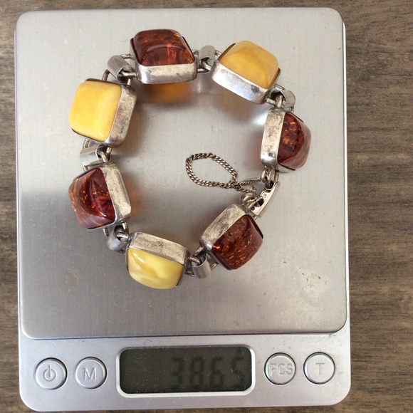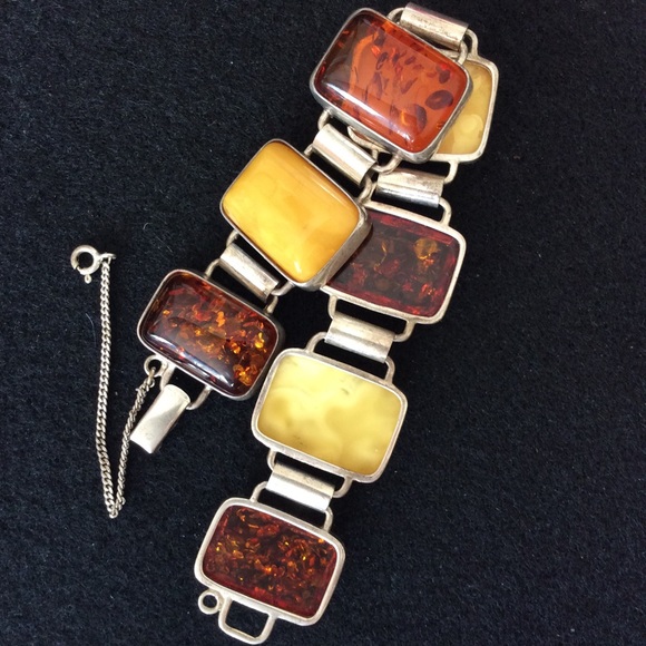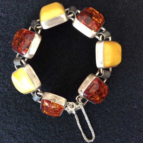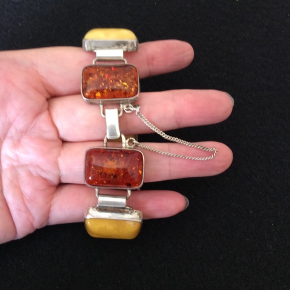 Vintage 925 string silver natural butterscotch amber bracelet.Approx bracelet length: 7.5” inches Approx Amber Size: 17x24 MM925 stamped.#pm21