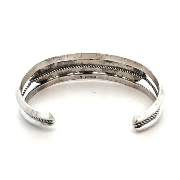 * Native American L 925 Sterling Silver Oval Green Malachite Open Cuff Bracelet* Inner cuff measures: 5-1/2"* Gap measures: 1-5/26"* Top of cuff width: 3/4"* Weight: 34.2 tgw* 5...