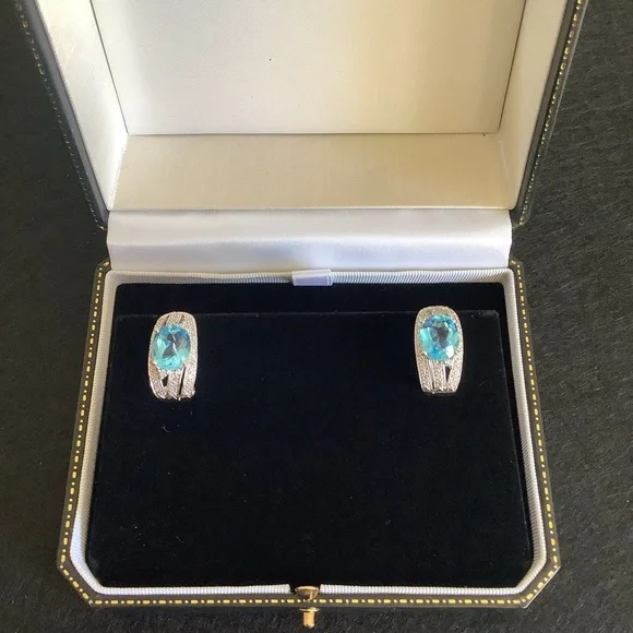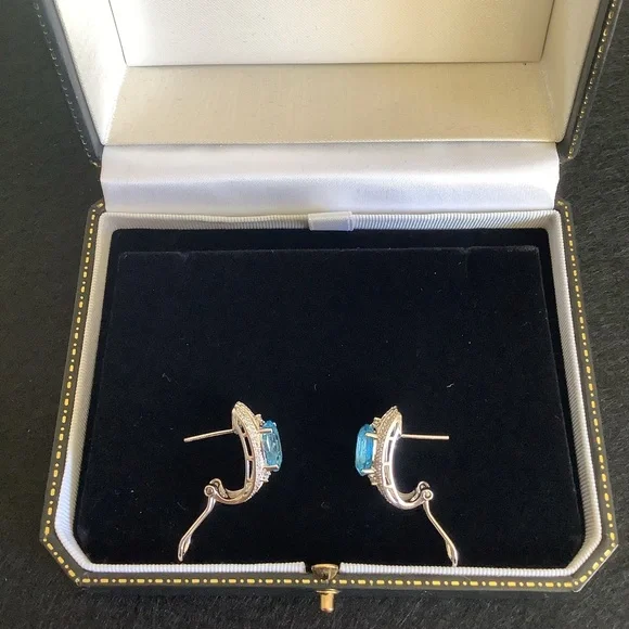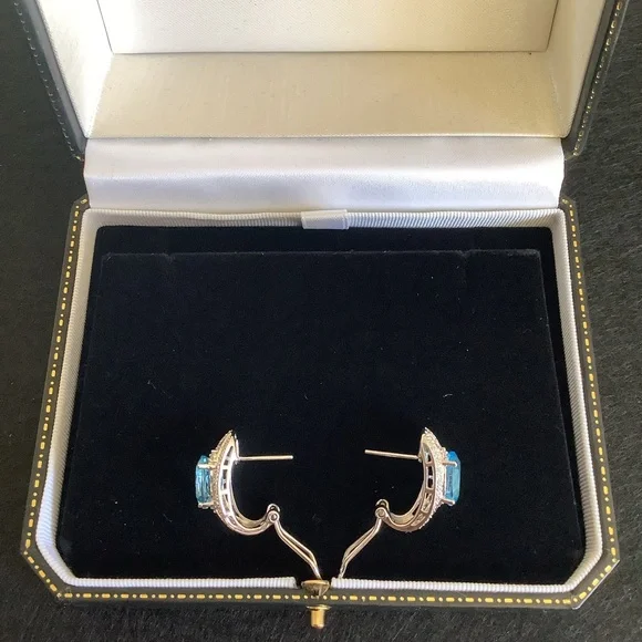 NEW 10KT white gold natural blue topaz and diamond earrings.