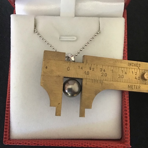 NWOT 18KT White Gold Natural Tahitian And Diamond Pendant.Pearl Size Approx: 10MMDiamond Weight Approx: 0.15CTS.18KT 750 Stamped.Chain Display Only.Red box for photo only not...