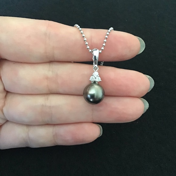 NWOT 18KT White Gold Natural Tahitian And Diamond Pendant.Pearl Size Approx: 10MMDiamond Weight Approx: 0.15CTS.18KT 750 Stamped.Chain Display Only.Red box for photo only not included.#48