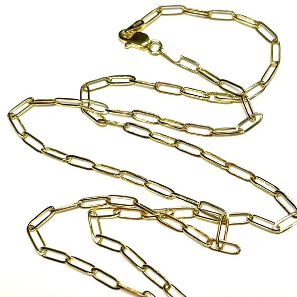Solid 10K Yellow Gold Paper Clip Link Chain Necklace 22" longEach link is 6x2mm.A new item made in solid 10K yellow gold, weighing 3.14g.Lobster Clasp. Marked 10K.Newly made.