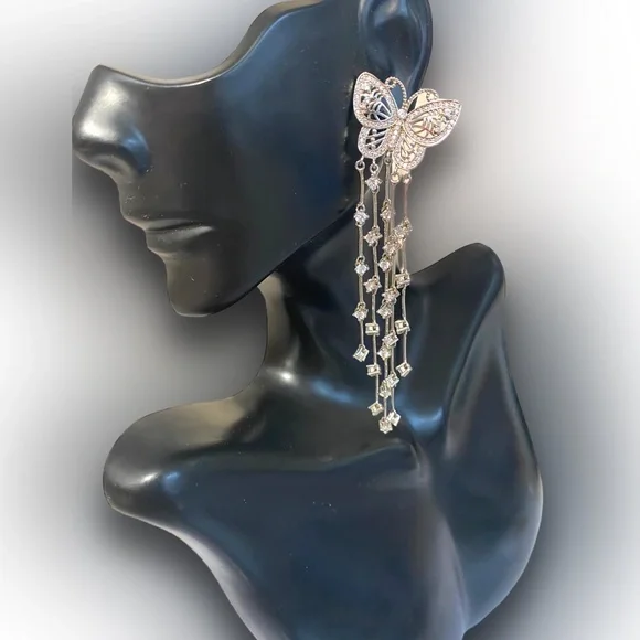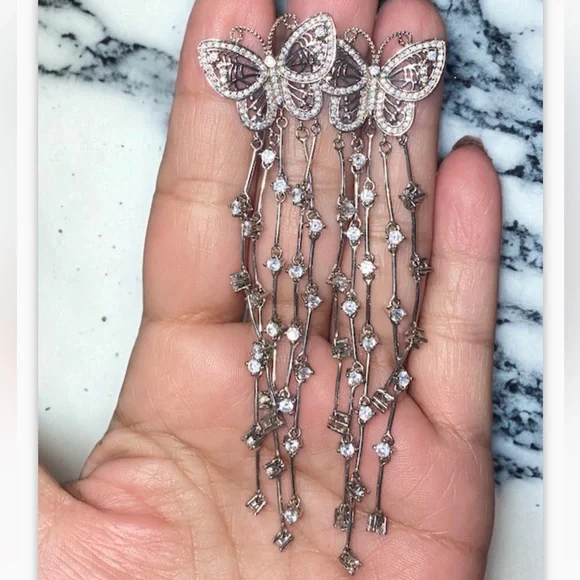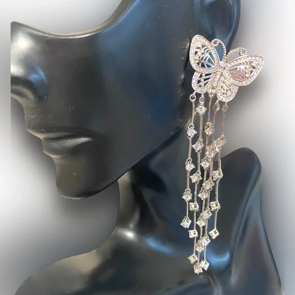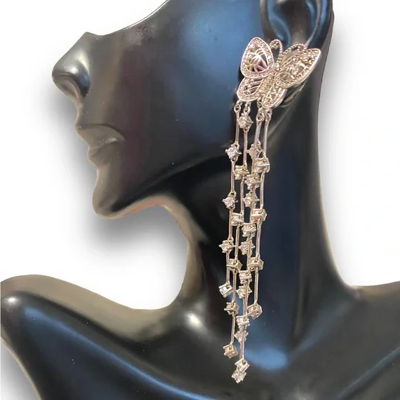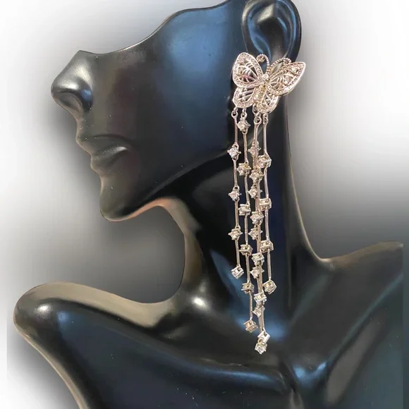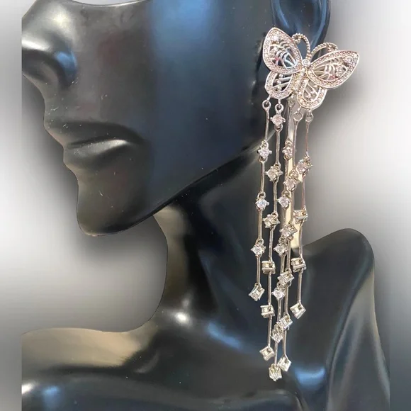 GORGEOUS Sterling Silver 925 EXTRA LONG BUTTERFLY Dangle Crystal Earrings!Amazing Sterling Silver Butterfly earrings!• Can be worn dressed up on a formal occasion or worn with...