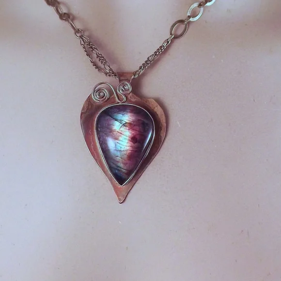 Labradorite is so intriguing!!! It has tons of colors with bright fire! It measures just over 1 1/8" x almost 7/8". Bezel set in 14kt gold fill to a Nu Gold Brass hammered and...