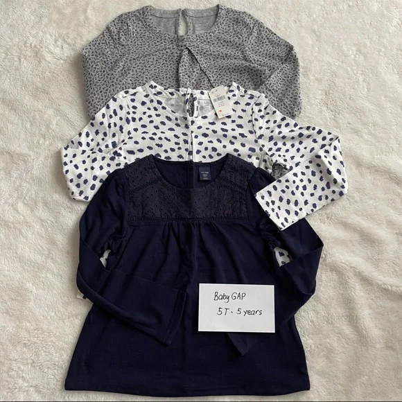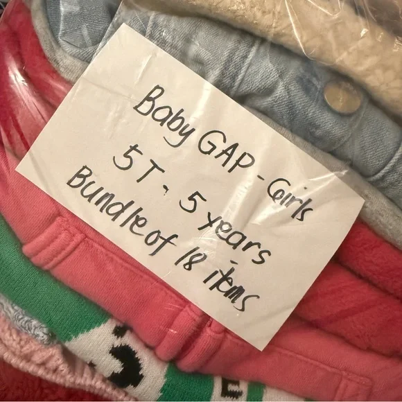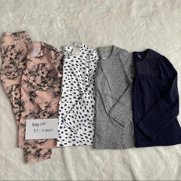 Baby Gap Girls variety of styles Girls dresses, sweat pants and jacket set, sweaters dress and Longsleeves, skirt to pants everything included.Pre-owned, excellent to barely used items, no stainPlease check pictures for design and descriptionsSize 5T/5 girls
