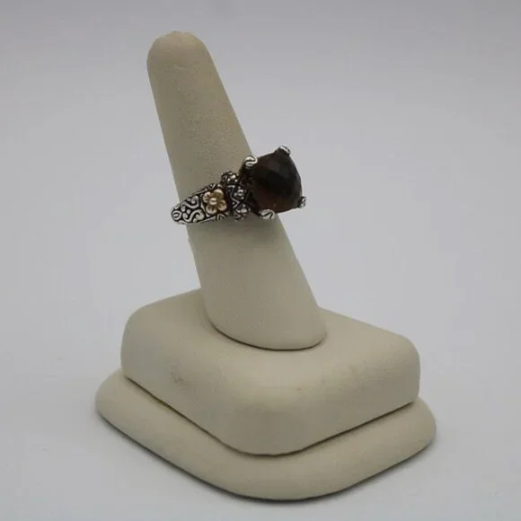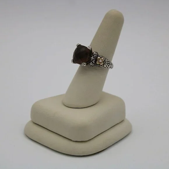 Add a touch of luxury to your jewelry collection with the Barbara Bixby Sterling Silver 18K Yellow Gold Cushion Cognac Quartz Ring. This stunning piece features a beautiful brown quartz stone surrounded by elegant gold accents. Perfect for adding a touch of sophistication to any outfit.Size: 6