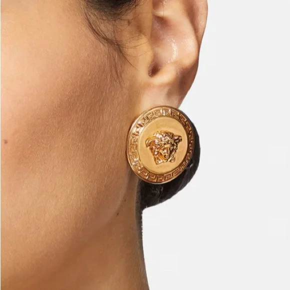 Versace TRIBUTE MEDUSA Large Gold STUD EARRINGS as shown in pics. New without tags. No defects. Retail: $395