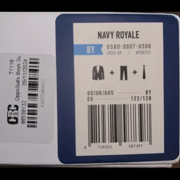 OPPOSUITS Boys Navy Royal Solid Suit Jacket pants tie Size 8