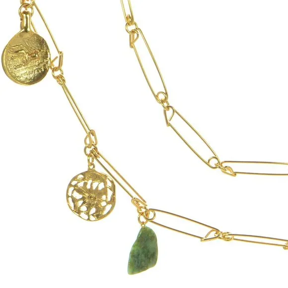 100% Authentic!Yellow gold plated pewter.Approx. 30"L with 4" chain extensionLobster clasp with logo charm.Made in USA.