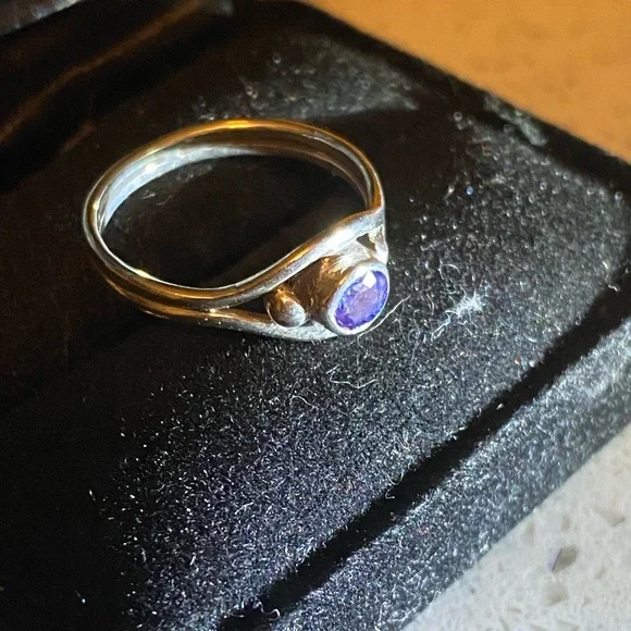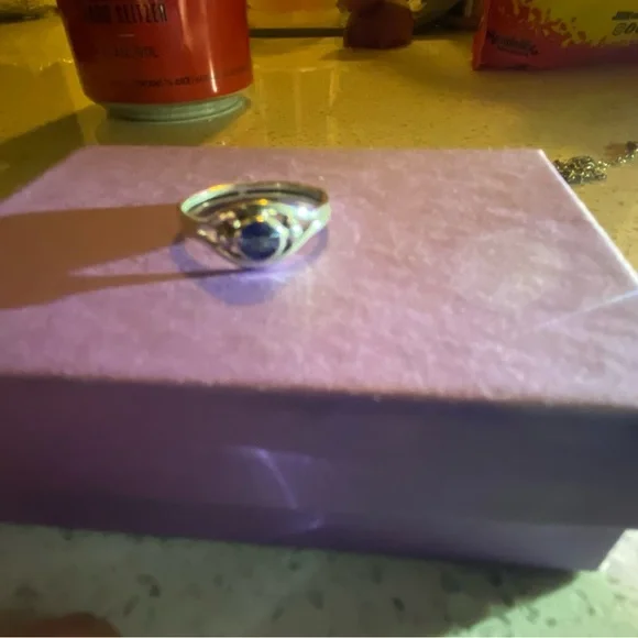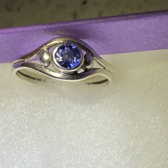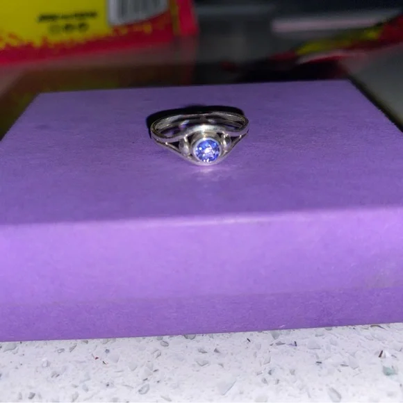Custom made, .999 Silver with .4ct Natural Blue Diamond.So 6.75