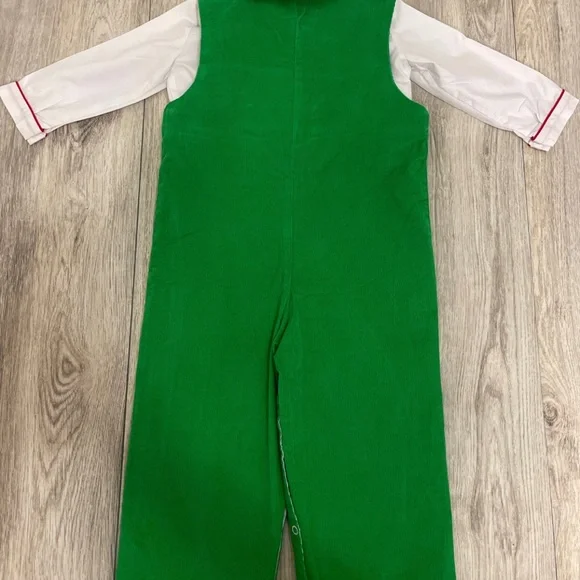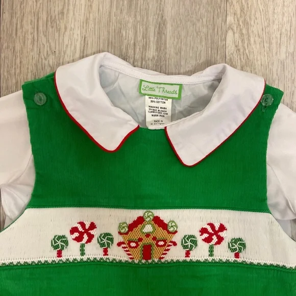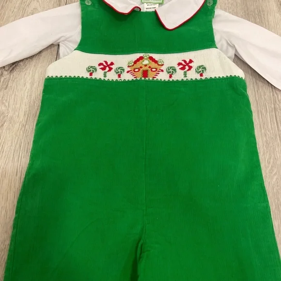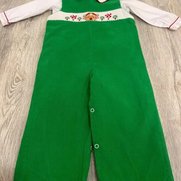 Little Threads 24 Month Boys Gingerbread House Green Overall Outfit very good condition #christmas