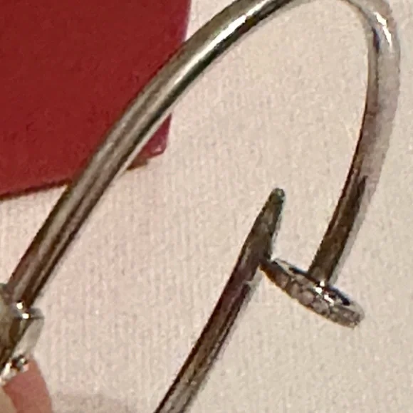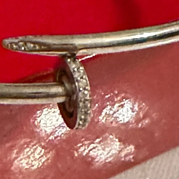925 sterling silver Nail bracelet very nicely beautifully custom made, and paid a lot of money for it made stones on the side and on the nails and please check picture number for there is one stone missing from it and it´s by design for it to close, fit, right perfect gift for anybody or yourself maybe looks like real gold