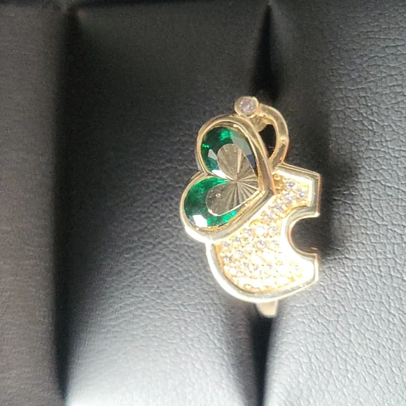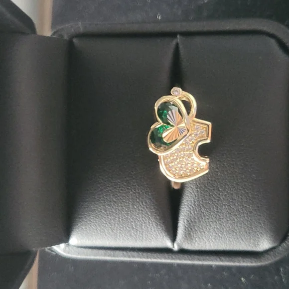 14kt solid gold green stone size 71/2