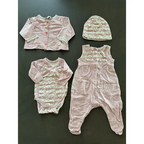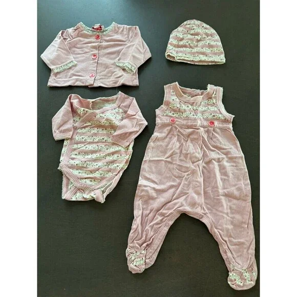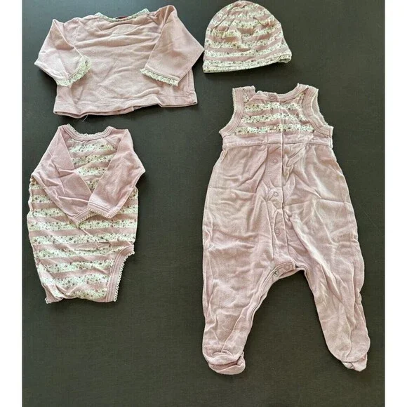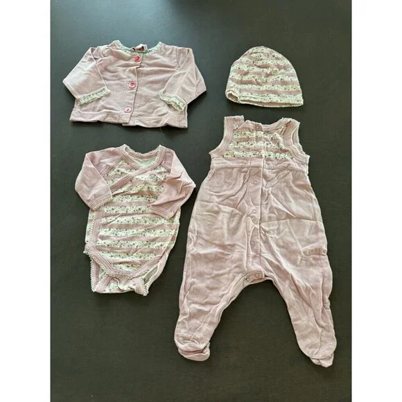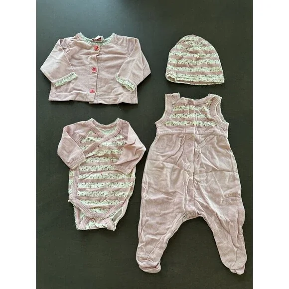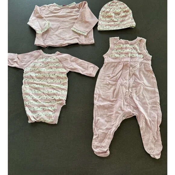 Violette Javier & Petit Bateau BABY girl NB outfit pink floral 4pc GIFT SET