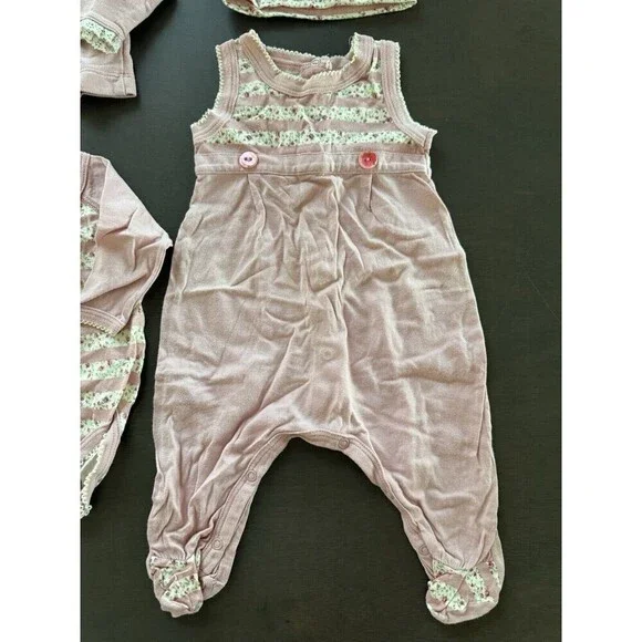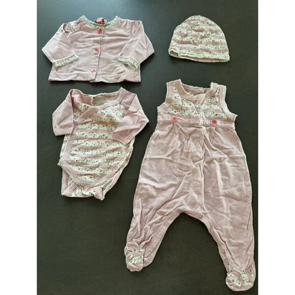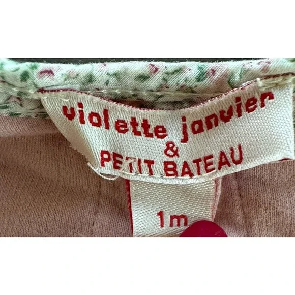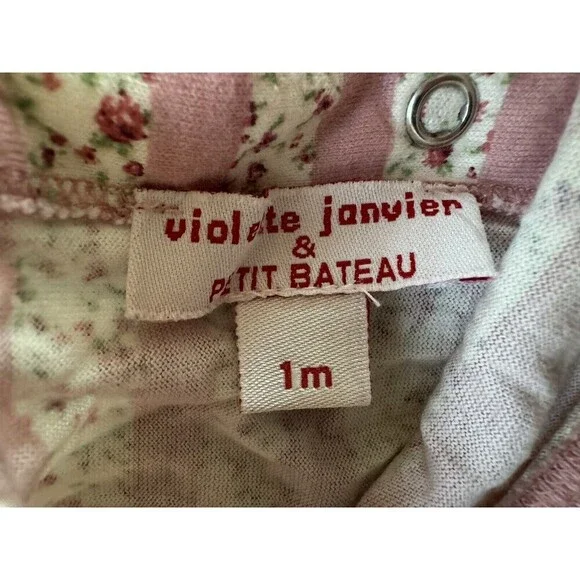 Dress up your little girl in this adorable 4-piece gift set from Violette Javier & Petit Bateau.The set includes a pink floral romper with a collared neckline and snap closure, a matching vest, a bodysuit, and a hat, all made from a comfortable and breathable velour fabric.The accents of flower trim add a touch of charm to the classic and timeless design. Perfect for formal occasions and all seasons, this organic and handmade outfit is machine washable for easy care.The size is 1M and the material is a mix of polyester and cotton. The set is perfect for any little girl who loves flowers and wants to feel comfortable and stylish.All preowned items are sold AS-IS. We do our best to photograph and describe the items accurately.Please note that the lighting in the images may sometimes affect the appearance of the color.Prior to making your purchase, we kindly ask that you thoroughly review all accompanying photos, as they serve as the most comprehensive description of the item.Your satisfaction is our priority, and we strive to ensure a seamless shopping experience.Please feel free to ask any questionFast shipping (same business day)Sku (box baby KN1)