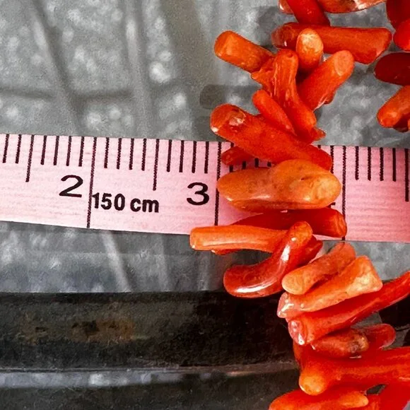 Early Vintage Salmon color Branch Coral Triple Strand Necklace Graduated length Lovely made with the coral graduated strung as well as each strand Graduated from approx 16-18" Long.The Floral repousse´ box clasp is a lovely detailed floral design.In good early vintage condition with a few imperfection on some of the coral pieces, Nature is Natural :)I am not sure of the metal, may be silver, not marked.Earrings on on a vintage screw back and looks like a brass color, not sure of the metal.Approx: Earrings 1 3/4" from top to bottom.Approx: shorter strand 16", Middle strand 17" & longer strand 18"Approx: 67.8 total gram weight,Vinegar and Milk tested :)I do have other lovely Coral Jewelry listed if interested as well as Antique, Early Vintage, Vintage, Preowned, Newer and New Jewelry listed if interested.Thank You For Visiting.I ship out same day.All questions encouraged & additional photographs will be sent upon request Please Look at all photo´s as all sales are final.