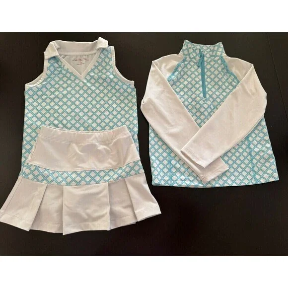 LITTLE MISS TENNIS Sunset in Sydney 3pc set skort+ tank top+pullover size 4/5