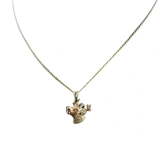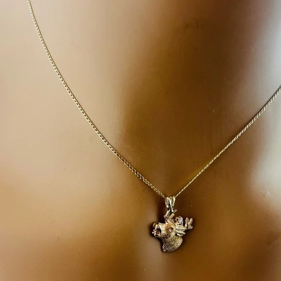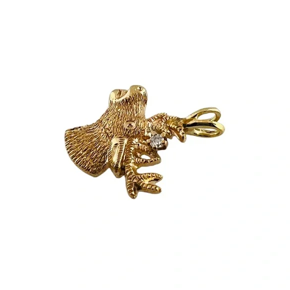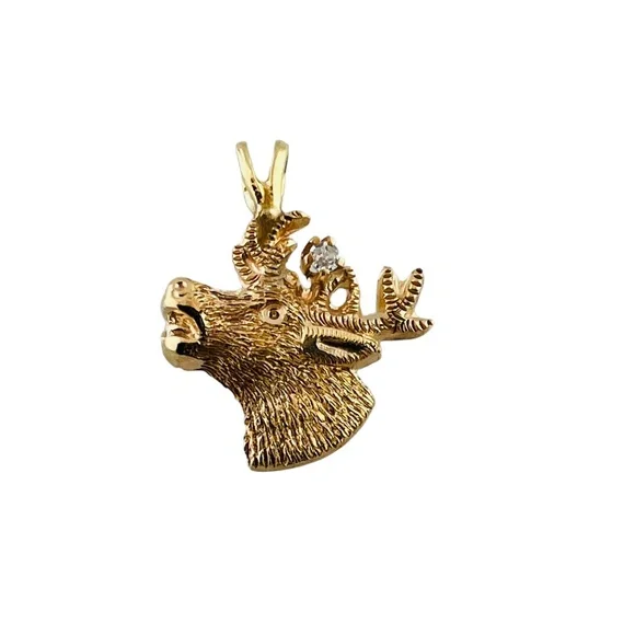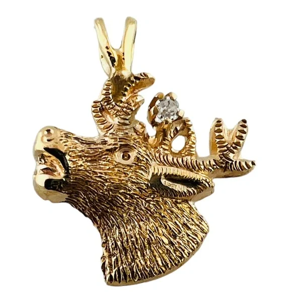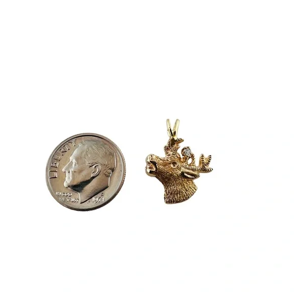10K Yellow Gold Diamond Deer Head Charm Pendant #15997