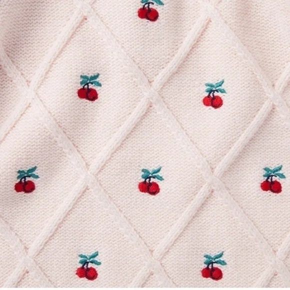 A soft matching sweater set to sweeten any day. With embroidered cherries, a diamond cable knit and ruffles details we love.55% Cotton/25% Rayon/20% NylonLong SleeveButton...