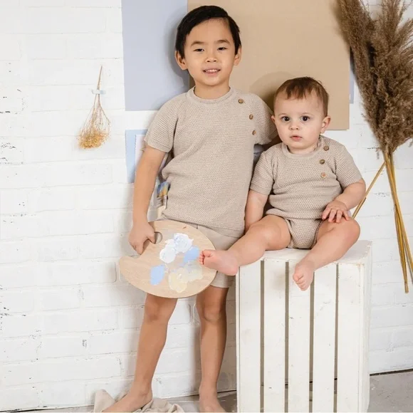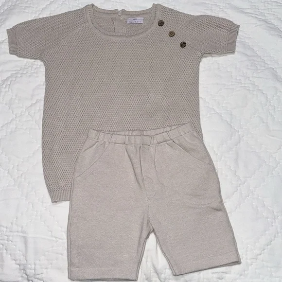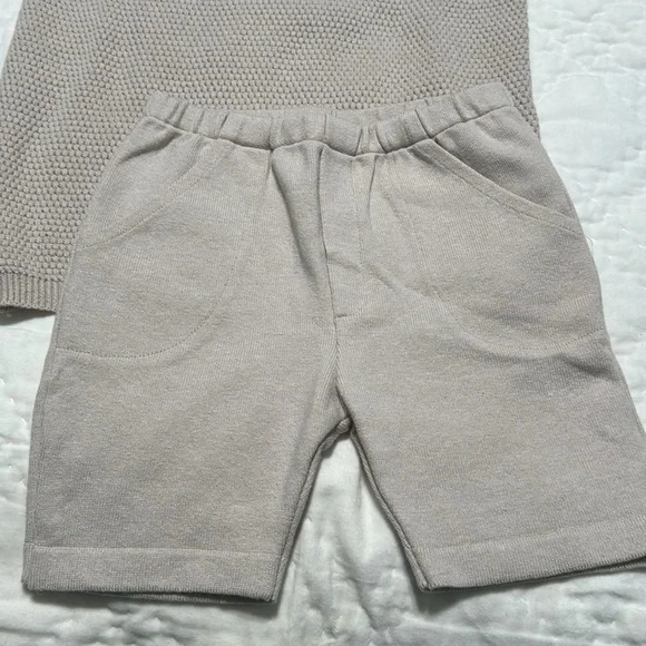 Knitted matching set Short and short set Buttons on a side for decorOatmeal color.The color on picture look a bit darker then the set i. Color is same as first pic