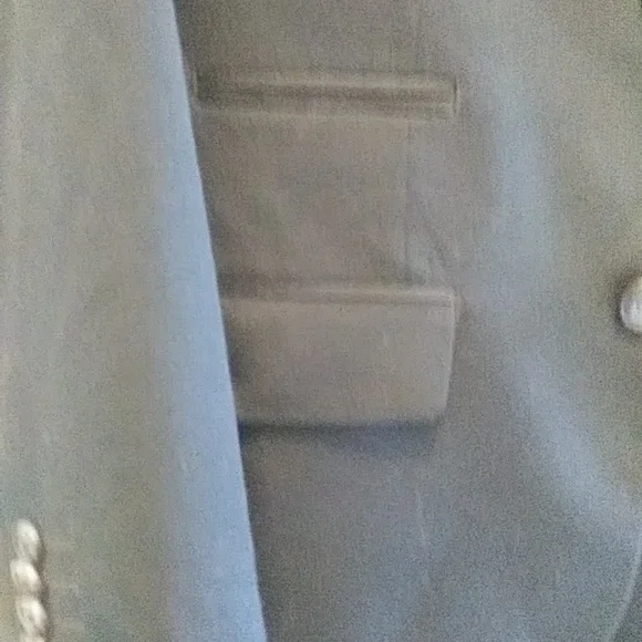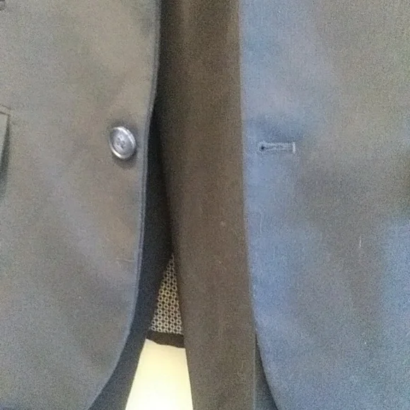 this is a two-piece suit the pants two pockets on the back with buttons two side front pockets belt loops.jacket is two button closure with two pockets in the front two pockets inside and you have a small little pocket. the sleeve of the jacket has four buttons as well but they do not open the jacket up on the on the sleeves.inside of the jacket has a cool lining that is blue.