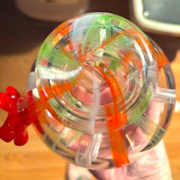 Murano Italy Vase,Applied Red Flower.Handblown By Glass Artisan’s ,Murano
