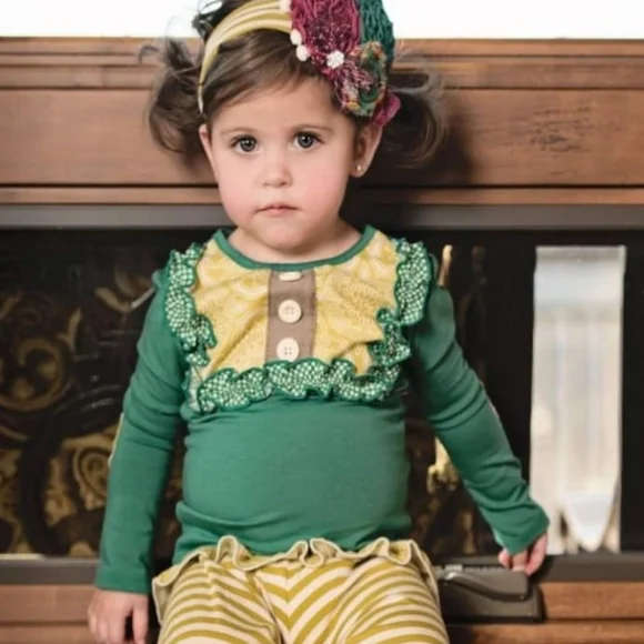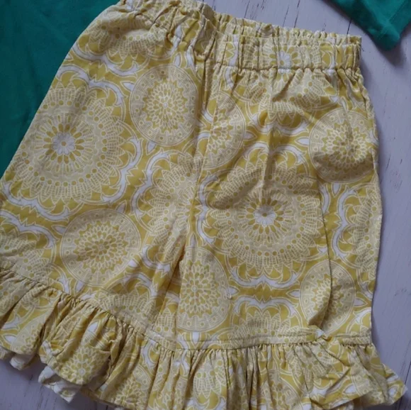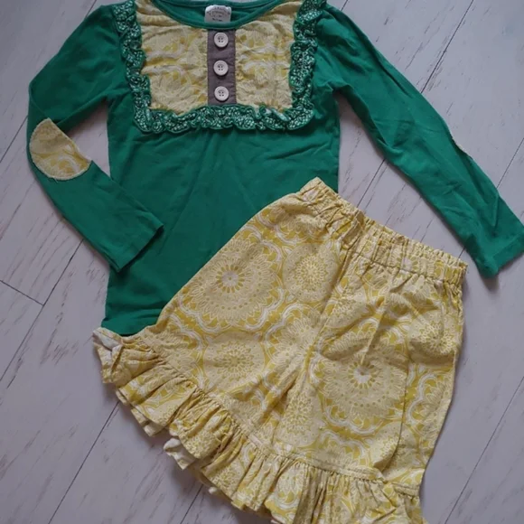 Persnickety Clothing Emerald Pine collectionLou Lou top Long Sleeve Elbow Patches Ruffle FrontRetail $48Sz 6Excellent used condition Ruffle shortiesElastic Waist Ruffle Hem All over Print Retail $48Sz 6Excellent used condition smoke & pet free home***Striped Big Ruffle Pants & Headband available in separate listings***Persnickety gigglemoon mustard pie Matilda Jane Tea Collection wildflowers jelly the pug mudpie SweetHoney Janie and Jack Vineyard Vines gapkids children´s place Persnickety gigglemoon mustard pie swanky Baby Vintage