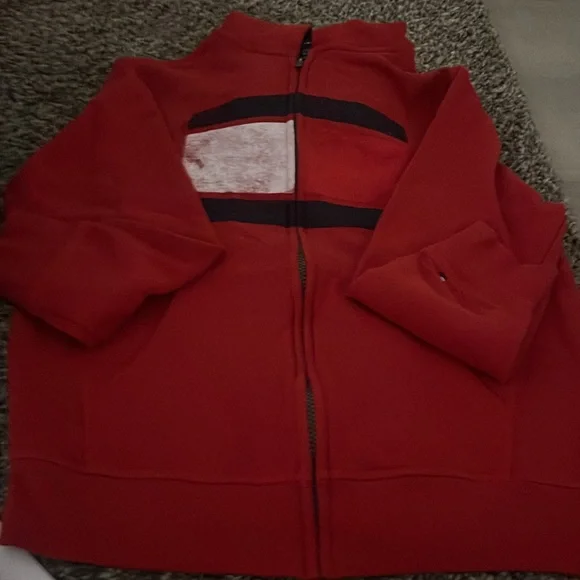 Stylish red hoodie from G-Star Raw. Features bold graphic design. Comfortable and trendy.