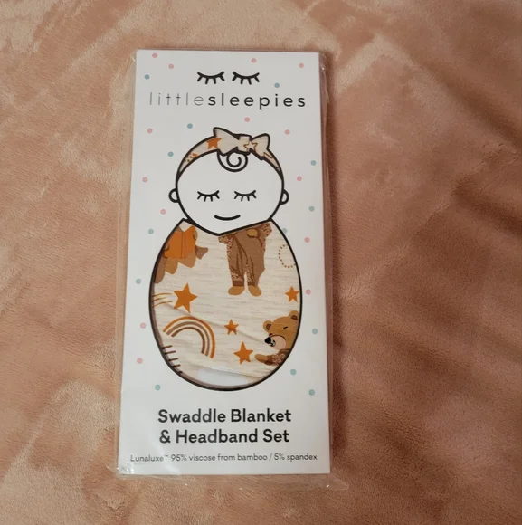 NWT Little Sleepies Beary Sleepy Swaddle & Headband Set