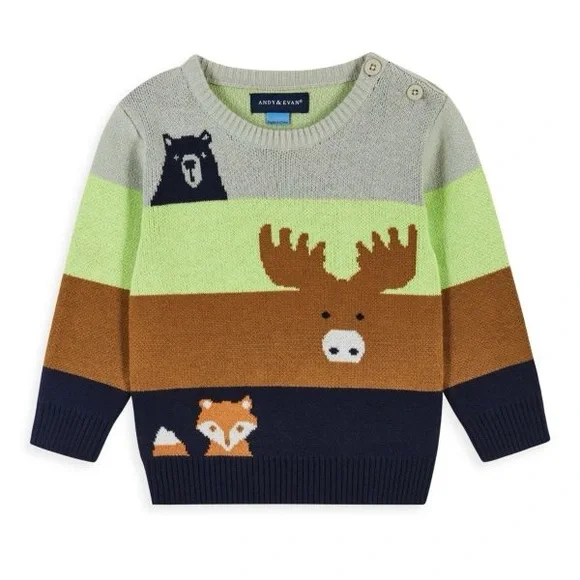Baby Boy´s 2-Piece Forest Animals Sweater & Pants SetNWT- new in bag - knit and ribbed knit pants - stretchy Details: Cotton. Machine wash. Imported.SWEATERCrewneckLong sleevesRib-knit trimPullover stylePANTSElasticized waistPull-on styleStriped ribbed cuffs