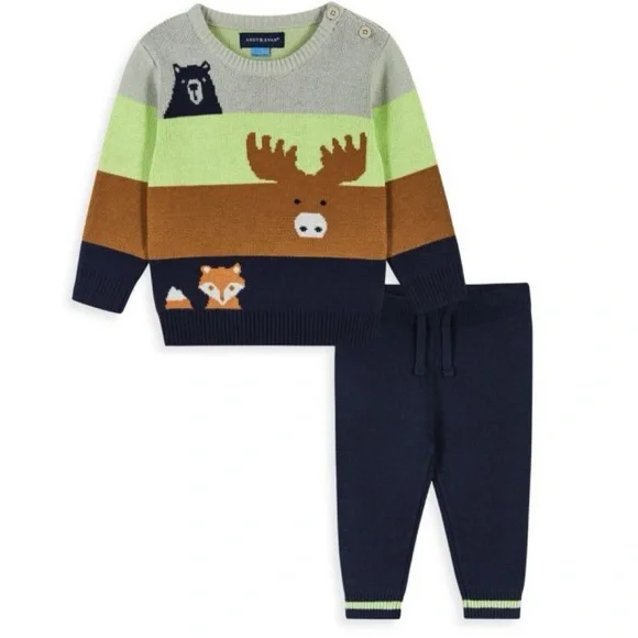 Baby Boy´s 2-Piece Forest Animals Sweater & Pants Set NWT