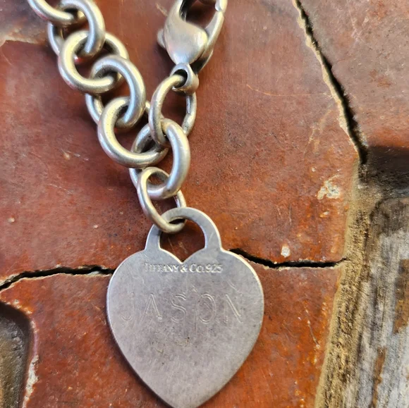 Silver bracelet w/heart has a name on it but can be removed cuz it´s lightly engraved....in good condition