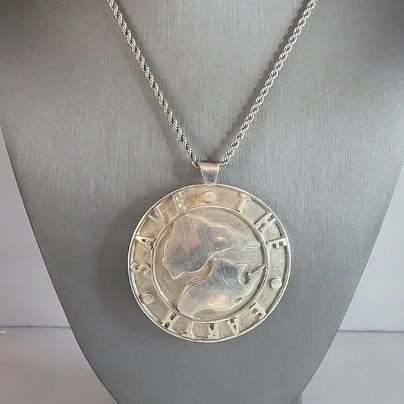 Vintage Sterling Silver Schoenfeld Save the Earth Pendant Necklace 48.4g E6936