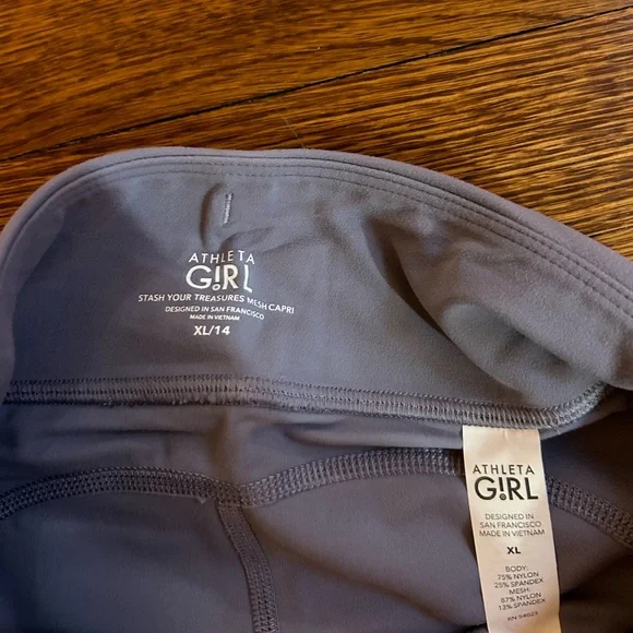 This is a matching set from Athleta Girl with the Stash Your Treasures Mesh Capri and the Long-Distance Bra/Tank. It is in perfect condition and has never been worn.