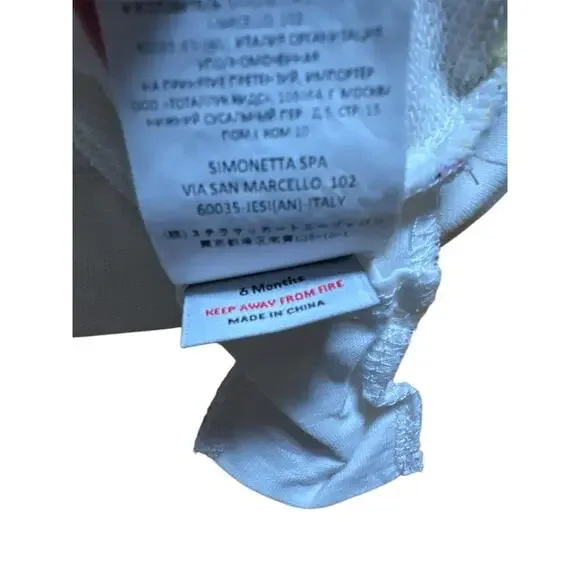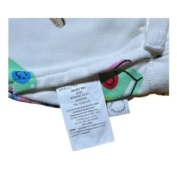 Stella sweatsuit, white with ice lolly print - size 6m. Drawstring, front patch pockets, close-fitting at ankles. Elasticated waist, sewn-in brand label, tie fastening. Please see...