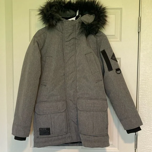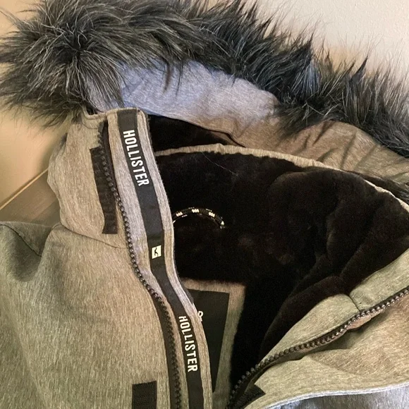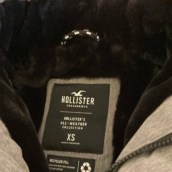Hollister Gray Puffer Jacket with Faux Fur Hood Men’s xs