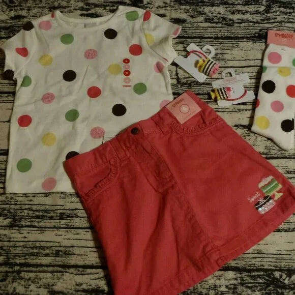 Gymboree Tea For Two Pony´s Size 6 Shirt Adjustable Skort 5-7 Socks Outfit NWT. TEA FOR TWO LINE-2009NEW WITH TAGS ATTACHEDSIZE 6 SHIRT & SKORT, 5-7 SOCKS, 2 PONYTAIL HOLDERSSKORT IS ADJUSTABLE WAIST & FRONT ZIP & SNAP---BIN 1A--John´s Store---
