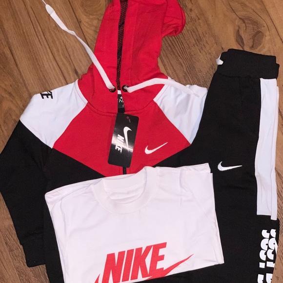 3 piece set includes zip up hoodie, working drawstring pants and long sleeve shirt. Fits true to size.