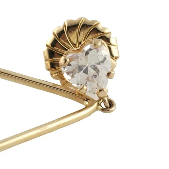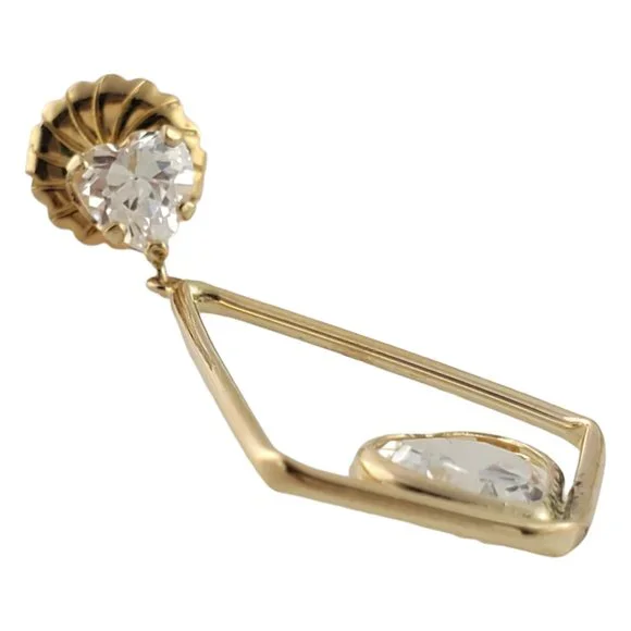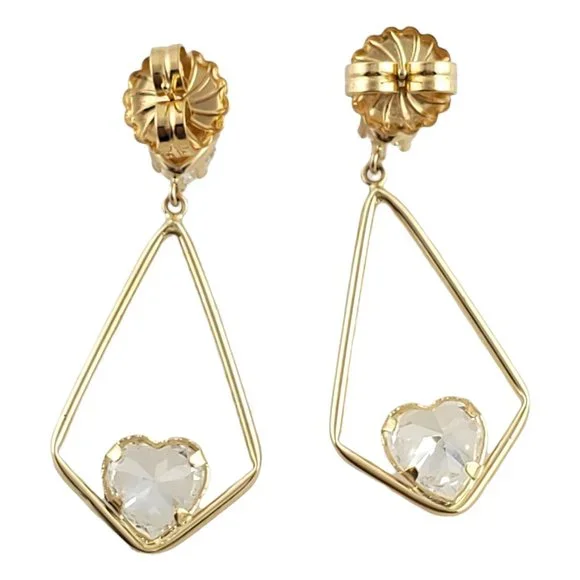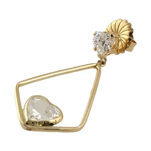 Vintage 14K Yellow Gold Dangle Cubic Zirconia Heart Earrings #12383
