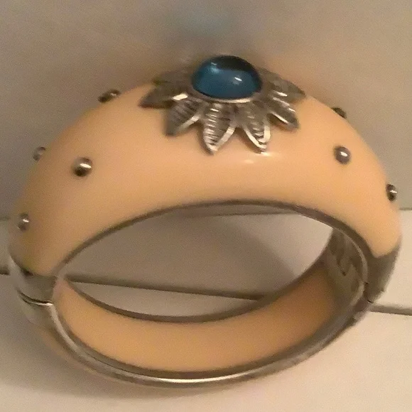 Turquoise quartz resin bangle with sterling pebbles, hinges and base of turquoise quartz