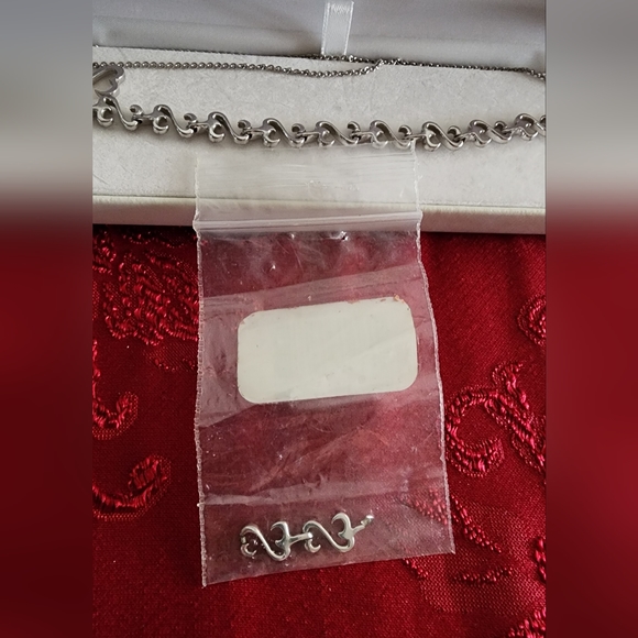Matching open hearts necklace and bracelet. Necklace is 18 inches long. Bracelet is 6.5 inches long (for smaller wrist or put an extension to make it longer). I have the extra...