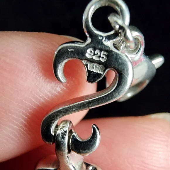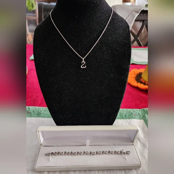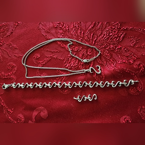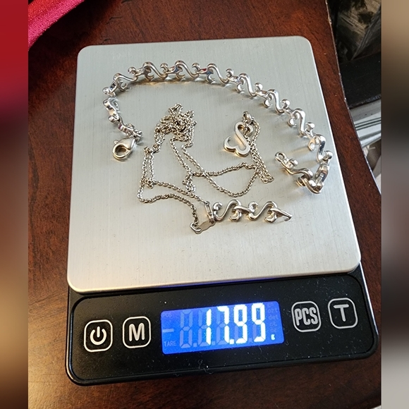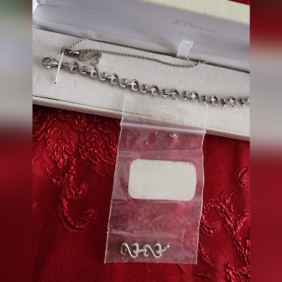 Matching open hearts necklace and bracelet. Necklace is 18 inches long. Bracelet is 6.5 inches long (for smaller wrist or put an extension to make it longer). I have the extra links, it will make 7 inches long. Marked 925 JWBR. Sterling silver.