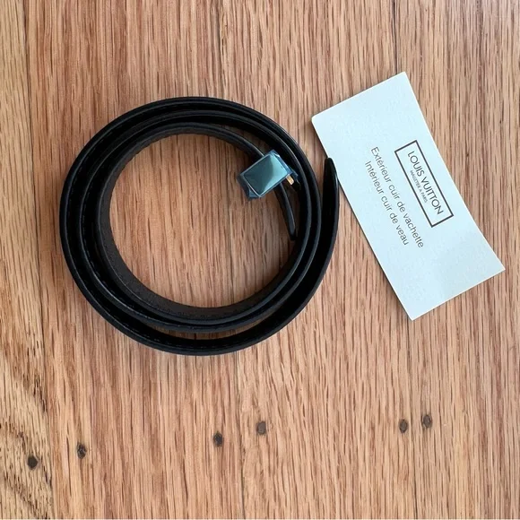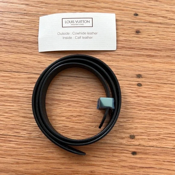 Brand new 100% authentic Louis Vuitton black leather wrap bracelet with gold logo clasp. Never been worn and I leftthe thin blue wrap on the hardware to protect it. No box but small card that came with it included.