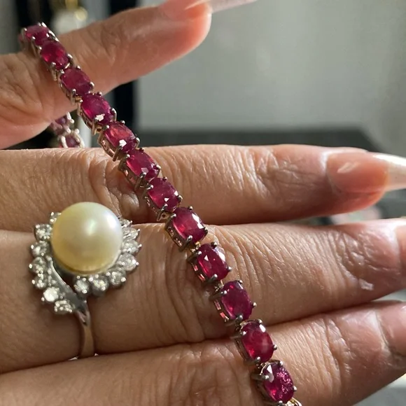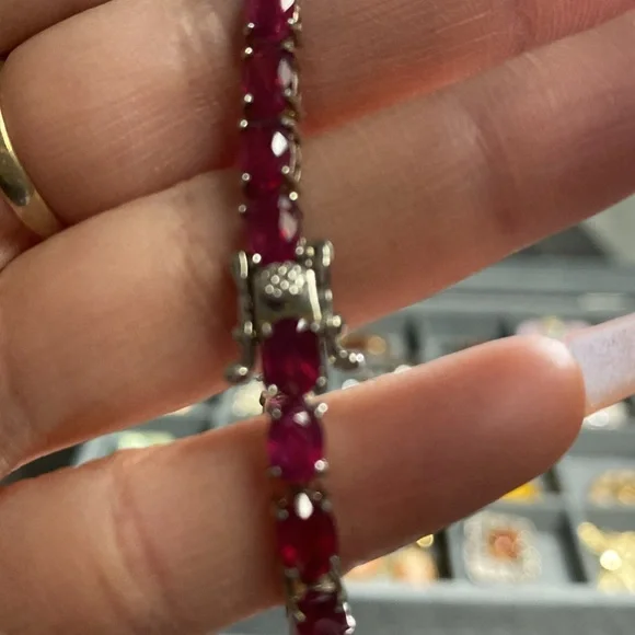 Genuine Ruby tennis bracelet white gold inlay sterling silver