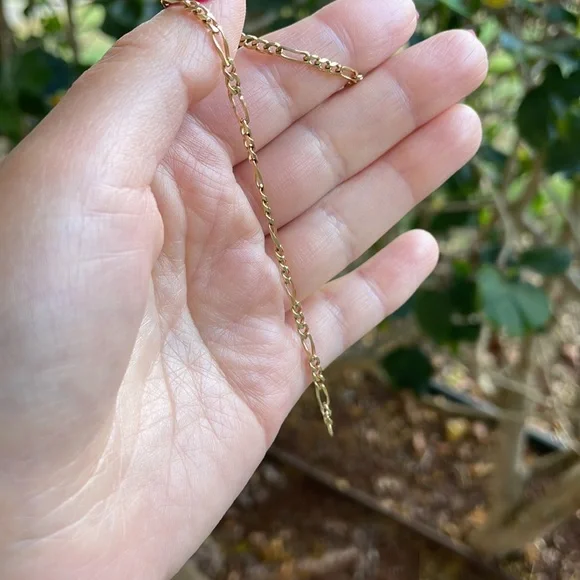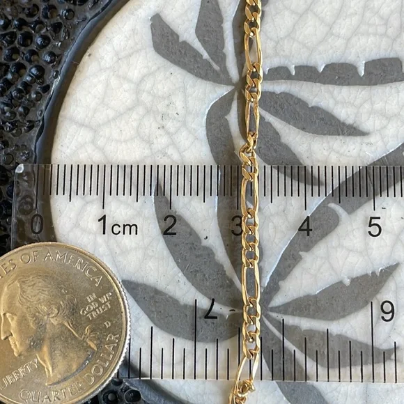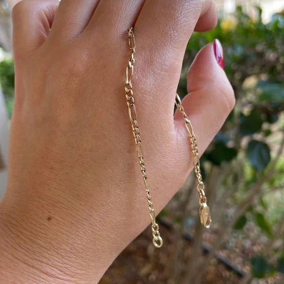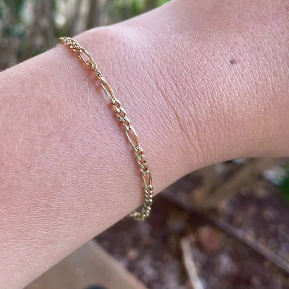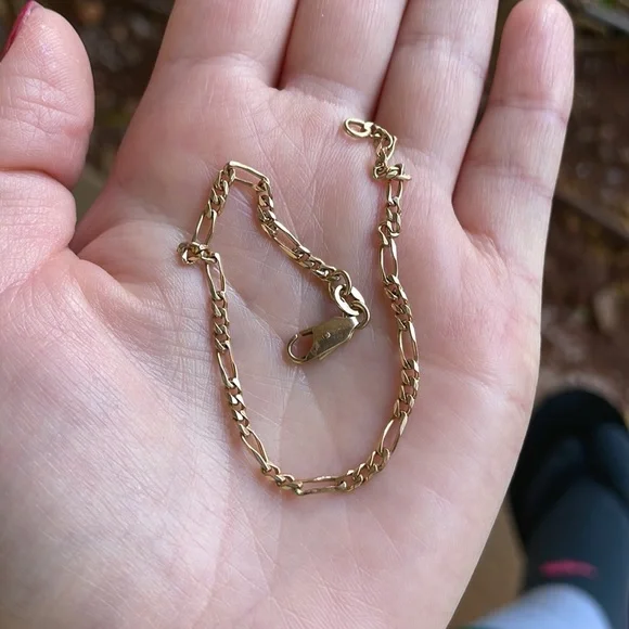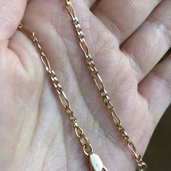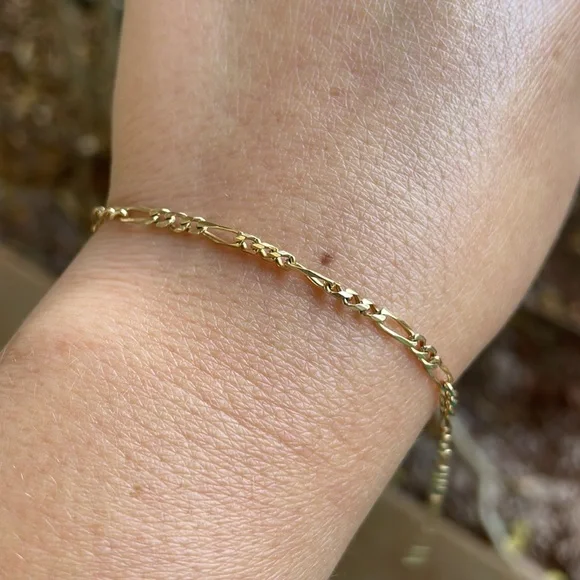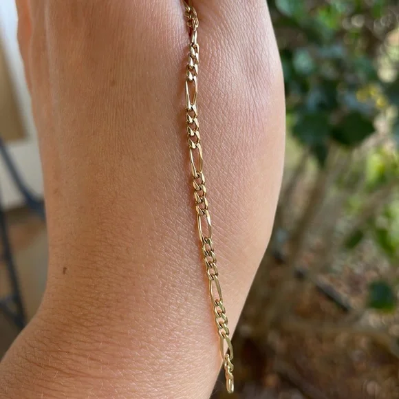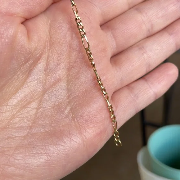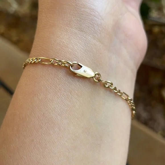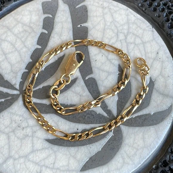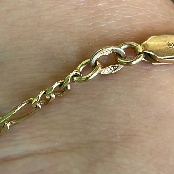Beautiful Figaro Bracelet 7inches Lobster clasp securement Stamped 885 below lobster clasp585 denotes 14k and acid tested.Unisex Bracelet Pre loved condition