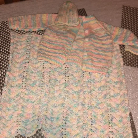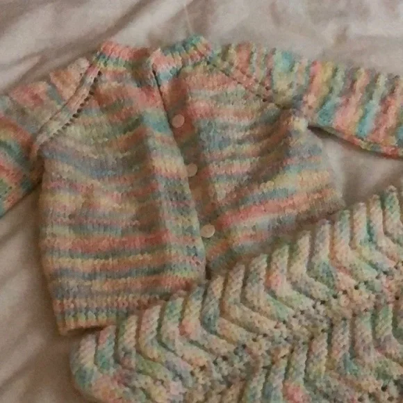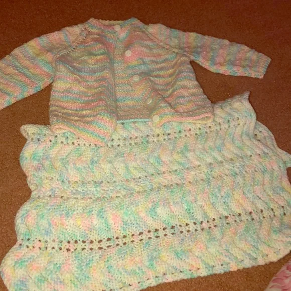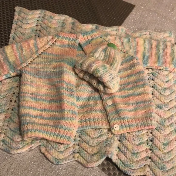 Bring your baby home with this beautiful handmade set a cardigan a hat and a mini blanket handmade quality makes all the difference make me an offer.Unisex