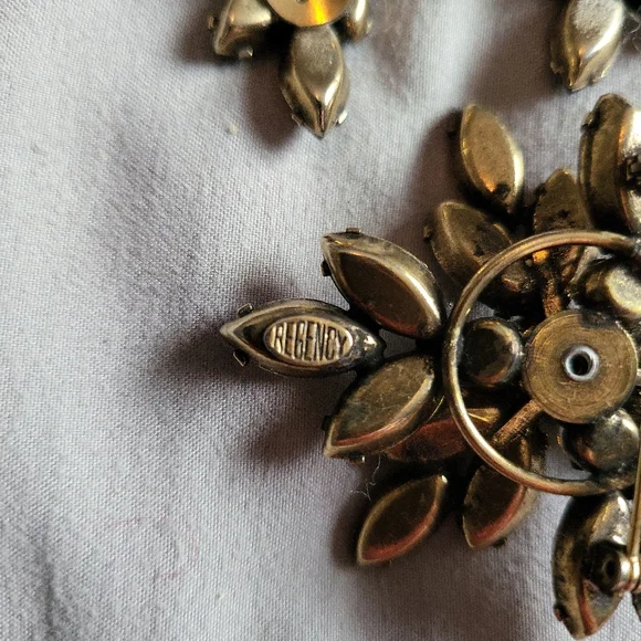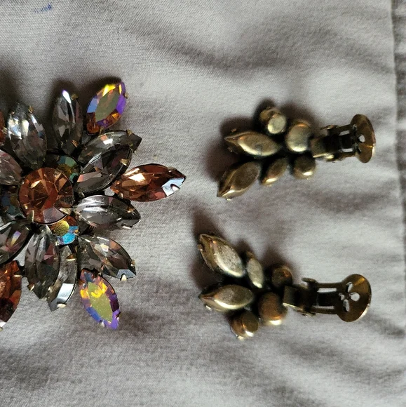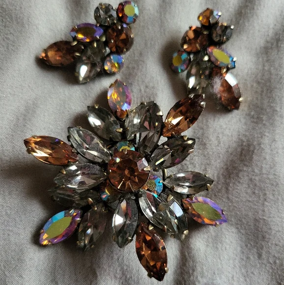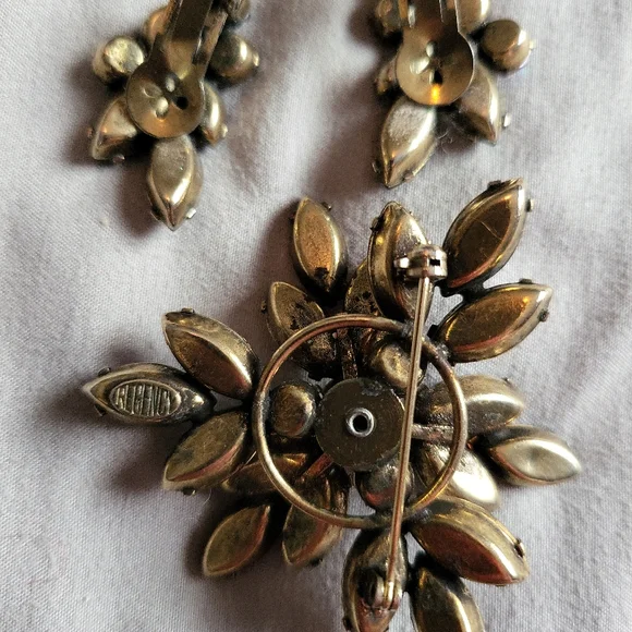 Regency Brooch & earrings Set. Gorgeous set! All stones are intact and clear! Brooch is signed. Earrings are clip ons
