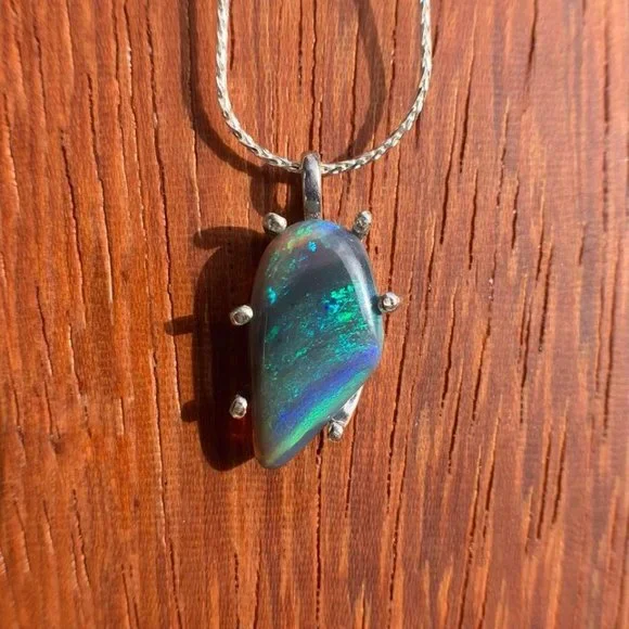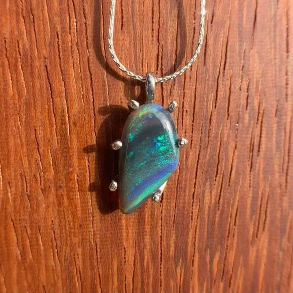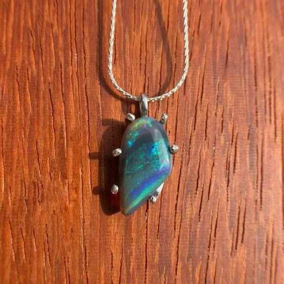 Majestic Freeform Striated Dark Lightning Ridge Opal Necklace Designer Custom